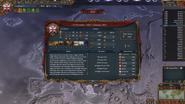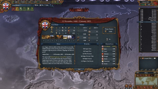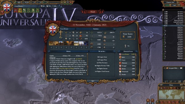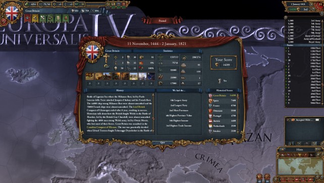 If you think the Civ series has become dumbed down or just want something deeper, maybe this game is for you. That said, this is not Civ. I would describe it as a historical world simulation. The game starts in 1444 during the decline of the Byzantin empire and close to the end of the 100 year war., and ends in 1821. You can basically pick any country during this time period (even though some of them has a lot more events and country specific decisions then other countries).