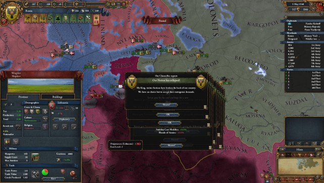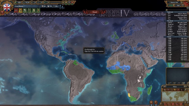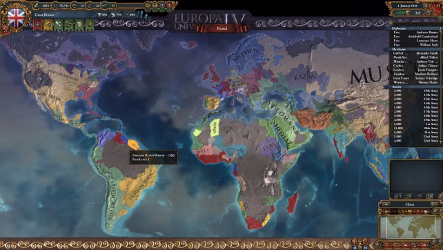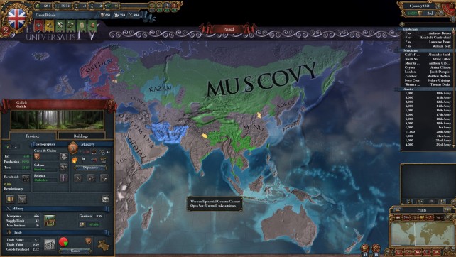 This is a grand strategy game, so expect to spend a lot of time looking at a map. Well, the concept is easy. You pick a nation, and control it from 1444 (or whenever you like to start) until 1821. Theis is a very interesting time period in most of the world, and the experiance may differ depending on what country you decide to play. For example, as England, you’ll start out in the hundred year war, but later on probably end up cononizing, trading and exploring the rest of the world, pretty much staying away from the european continent. ON the other hand, if you picka country such as Poland, you’ll end up in a lot of the big european conflicts. The game isn’t scripted per say, but some historical events will trigger under certain conditions, such events can turn out to be both good and bad. There are also a lot of other events that will trigger under certain conditions, such as big revolts, trade events and formation of new nations. The game has no real goal, even though there is a score system. it’s more of a simulation then anything else. The game has the usual features of other strategy games such as research, but things are structured in a slightly different way. When you first start out, it feels like you have very little control over your country’s progress, but as you dig deeper, you realized that there’s a lot of things to manage. I would recommend starting as a decent sized country without to many enemies. I started out as spain, and I feel that was a good idea. Your wars early on won’t be that complex and you can experiance some colonizing right off the bat.