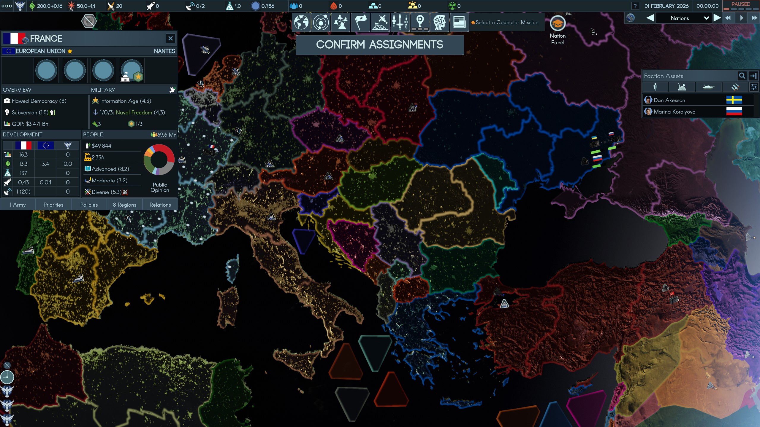 This is one of the most ambitious games I've ever played. It's trying to do a lot of things. Every region has GDP and a lot of the geopolitics are simulated. Also, a lot, if not most of the solar system is simulated. This is hard sci-fi with a lot of space physics simulated from my understanding. You could argue that this is several games baked into one. First of all you have the game on earth, where factions are struggling to gain control over nations, once you get into space, you have to manage space stations and fight space battles against aliens and possibly other factions.